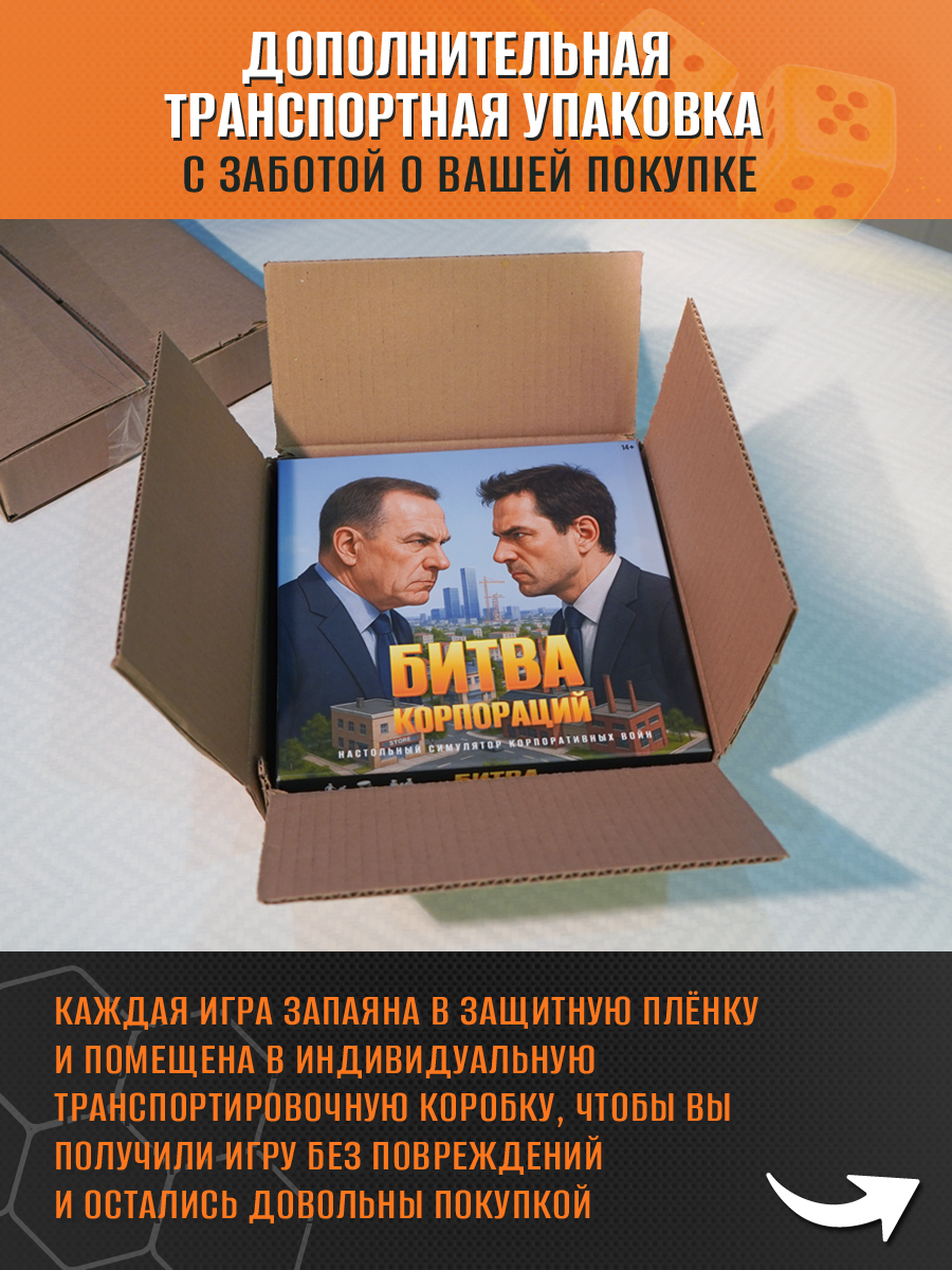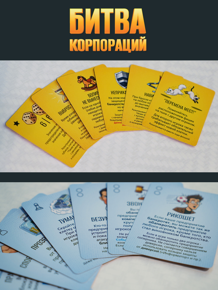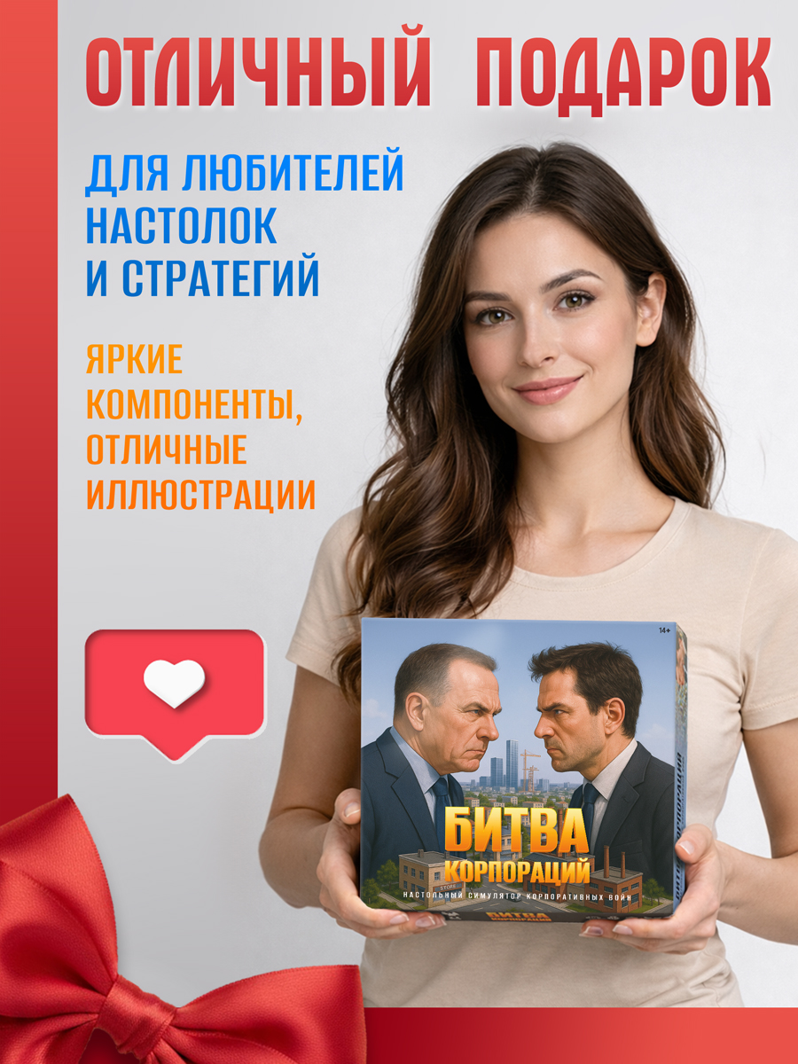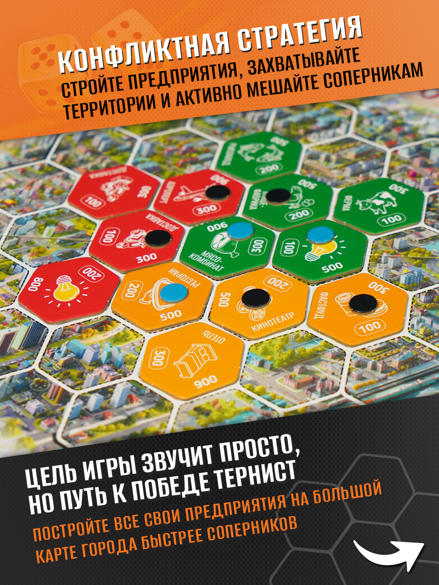 Новая конфликтная экономическая настольная игра стратегия, которая затягивает с первого хода. Здесь вы развиваете собственный бизнес, строите предприятия на игровом поле, захватываете ключевые территории и активно мешаете соперникам занять лучшие позиции. Комбинируйте механики для захвата территории, развития корпорации и игровых манёвров — и каждая партия превращается в напряжённую борьбу за лидерство, к которой хочется возвращаться снова и снова, открывая новые стратегии. Идеальна как настольная игра для компании друзей, семейных вечеров или посиделок с коллегами — глубокая тактика сочетается с азартом, партия проходит незаметно и увлекательно.